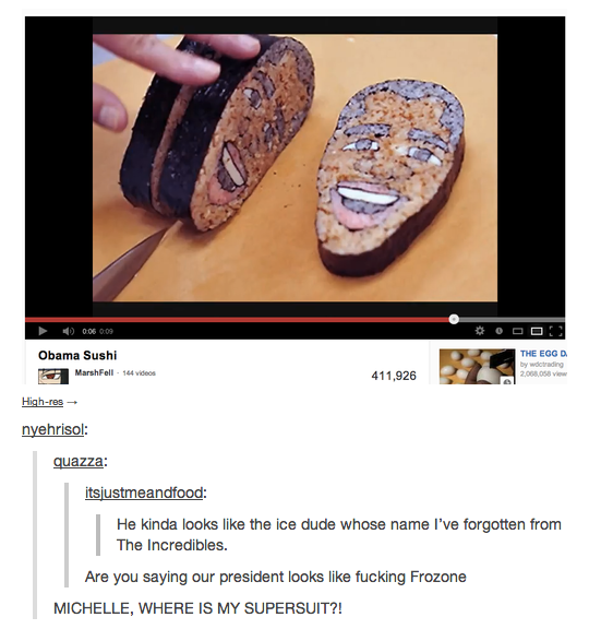 Obama Sushi Funny PicturesDecember 23, 201200BananersFounder and editor of Monkey Frolic.Share this:Tweet Email a link to a friend (Opens in new window) Email Share on Reddit (Opens in new window) Reddit